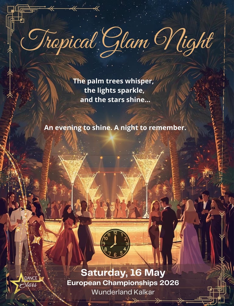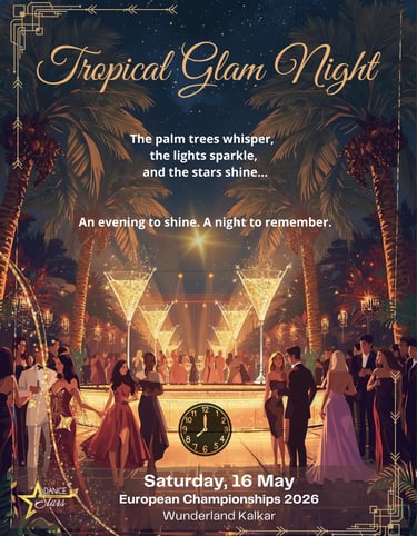 DanceStars European Championship takes place this season May 14th to May 17th, 2026 in Kalkar, Germany.
